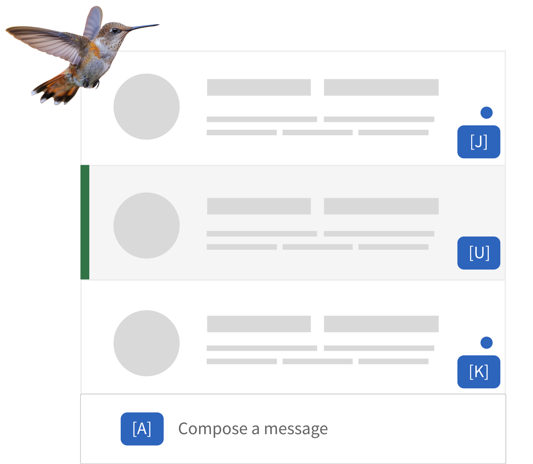 Keyboard shortcuts to switch between conversations, mark as unread & compose messages.